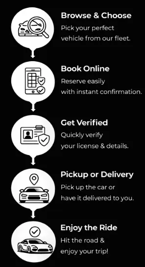 In case of a breakdown, contact our 24/7 support team. We’ll provide roadside assistance or arrange a replacement vehicle if needed.